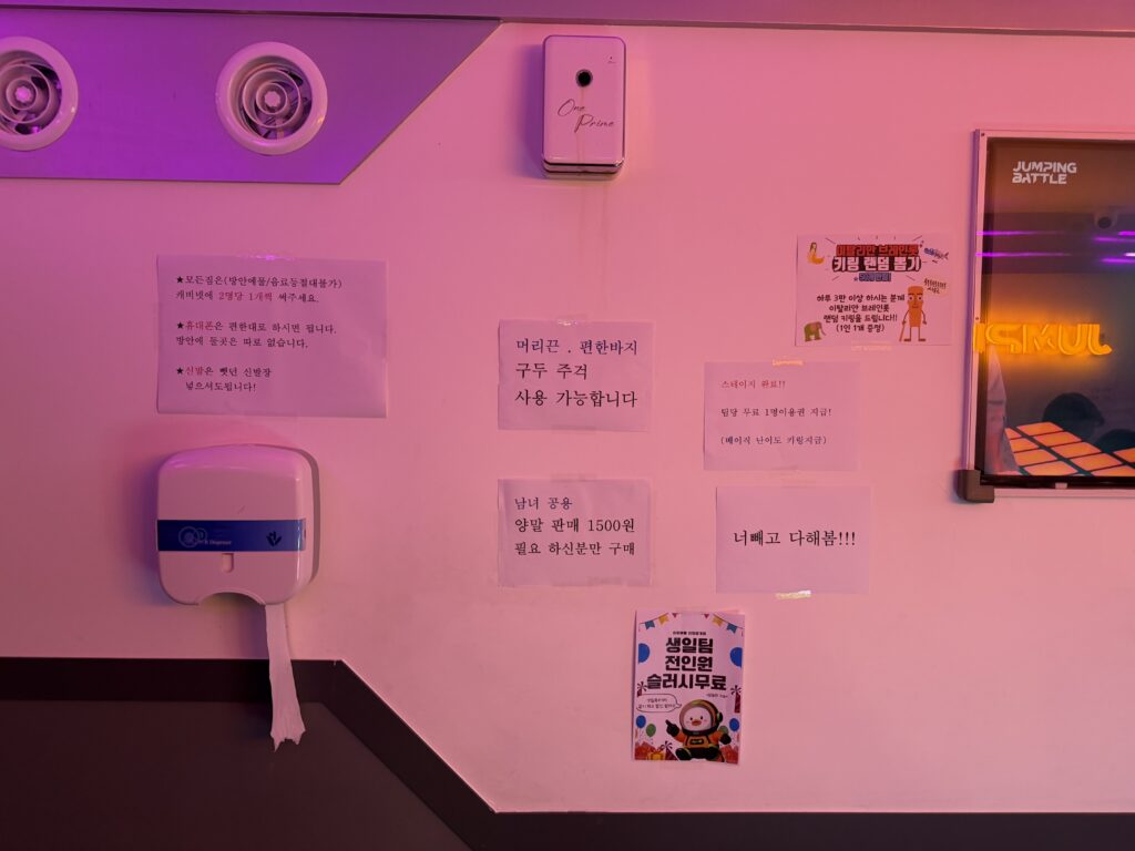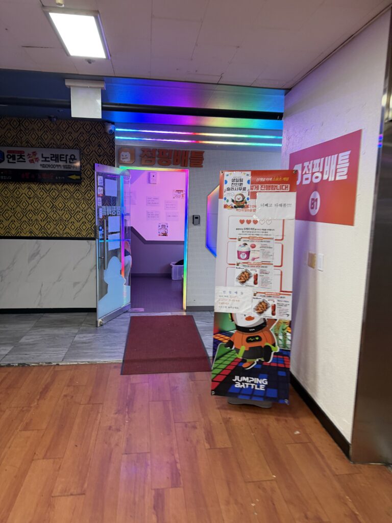 염색까지 완벽하게 마치고 나니 기분이 한껏 좋아져서, 아이들과 함께 어디라도 가야겠다는 생각이 번쩍 들었다. 마침 아이들도 심심해하던 참이라, 바로 범계역에 있는 ‘점핑 배틀’에 가기로 결정했다. ‘점핑 배틀’이라고 하면 그냥 트램폴린 몇 개 있는 키즈카페를 생각하기 쉬운데, 여기는 차원이 다르다.
